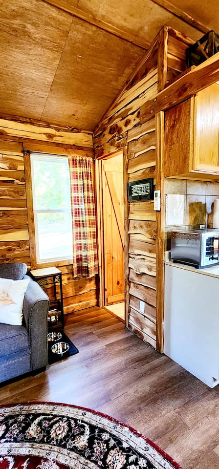 Your very own rustic hideaway in the woods, complete with a cozy porch to sip your morning coffee, watch the wildlife or catch a beautiful sunset.