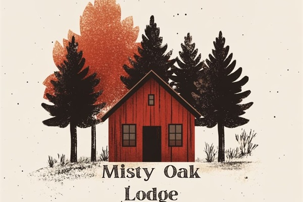 Misty Oak Lodge sits quietly among the trees with rustic fencing, a gravel drive, and a warm red exterior. The covered porch and wooded surroundings make it the perfect private escape for peaceful mornings, evening grilling.